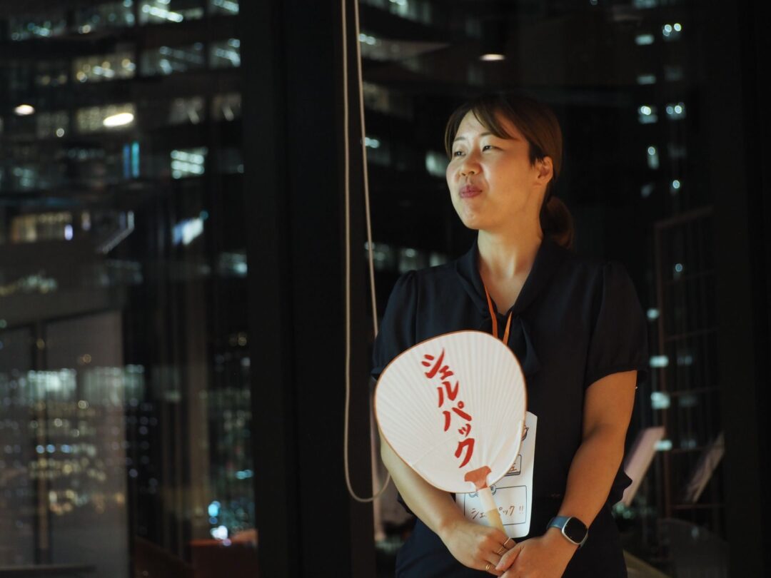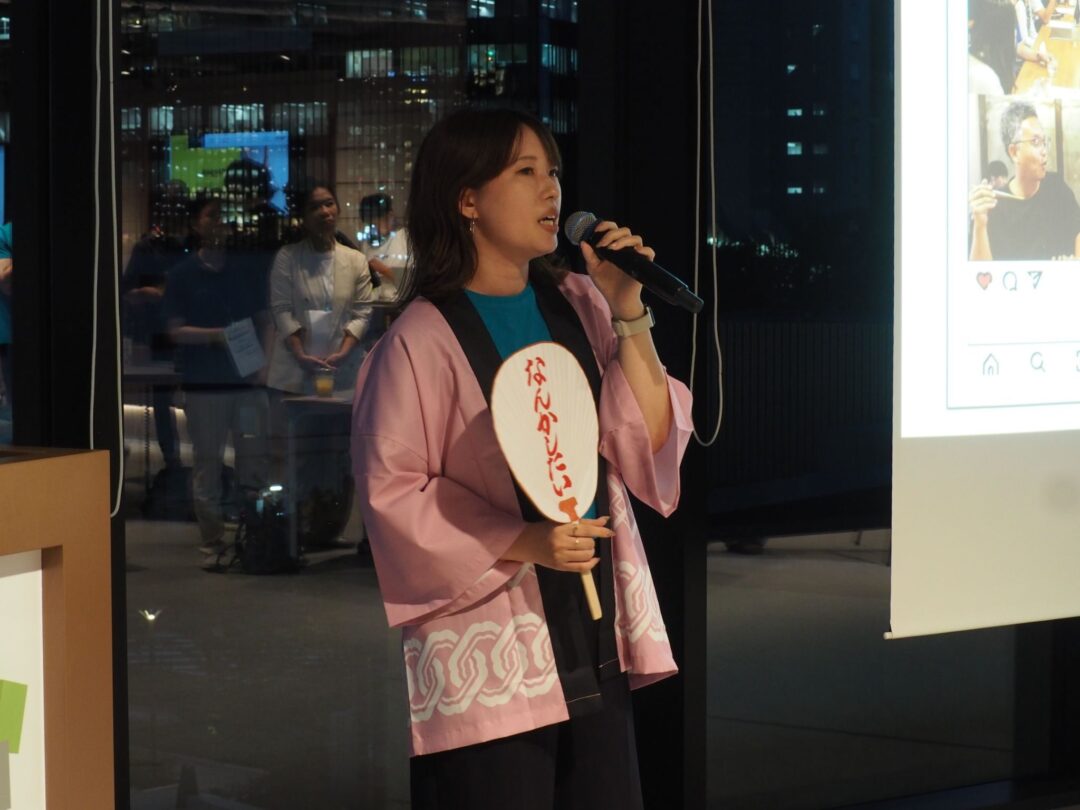 はっぴに身を包み、特製うちわを携えてプレゼンターが語りはじめます!
