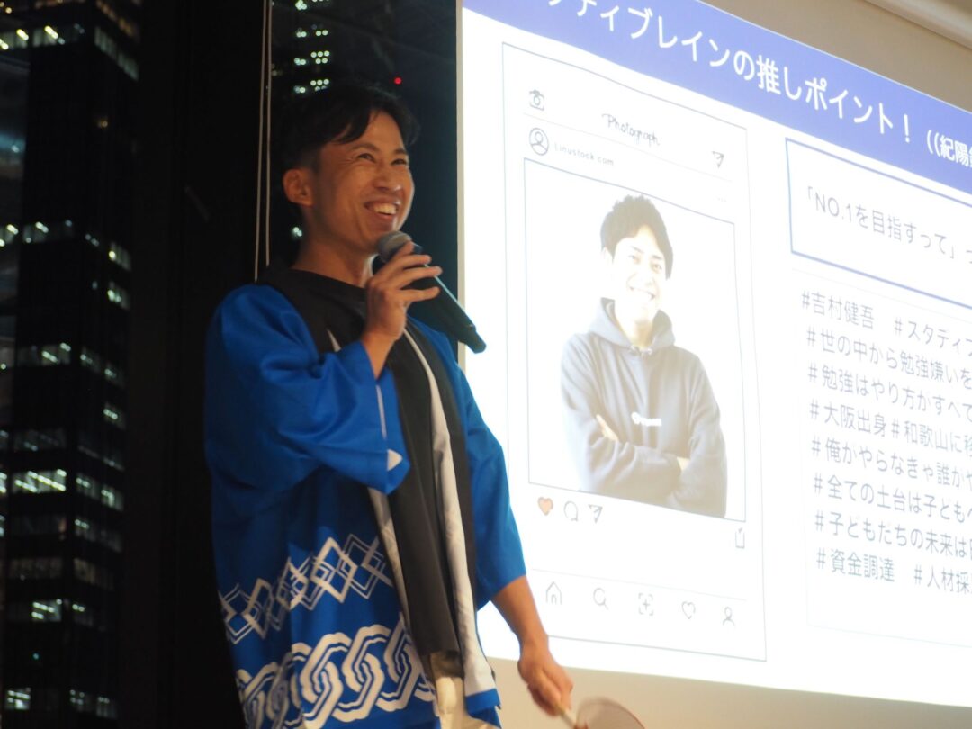 続いて紀陽銀行 上畑健太さんが推すのは、勉強方法の指導に特化した個別指導塾を営む「株式会社スタディブレイン」とその代表・吉村健吾さん。和歌山発のスタートアップで、2030年を目標に全国展開を目指しています。