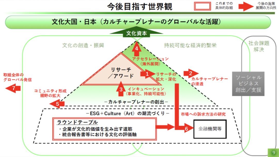 当時は「カルチャープレナーって何ですか?」とあちこちで聞かれ、説明を繰り返す日々が続きました。しかし今では、カルチャープレナーを支援する一般社団法人が設立されたり、商工会議所が文化起業家をテーマにイベントを開催したりと、ビジネス界に新しい概念が定着し始めています。また、教育や投資の分野でも活動の事例が出てきました。